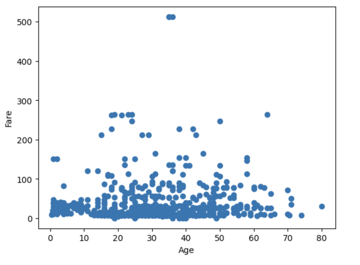 - 위의 케이스의 경우 나이와 요금에 대해 관계가 있어보이지 않음