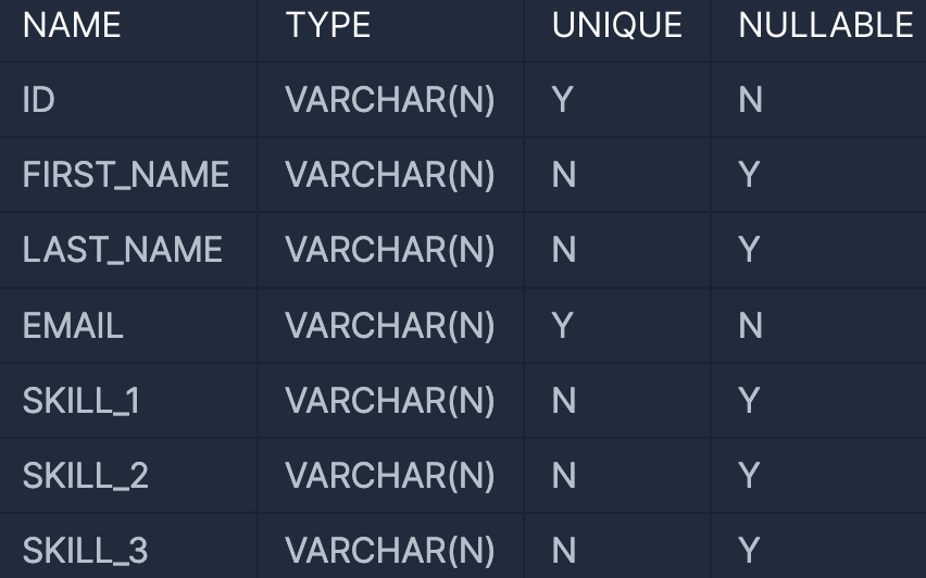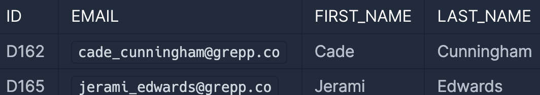 SELECT ID, EMAIL, FIRST_NAME, LAST_NAME