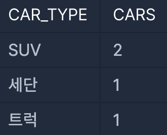 4. 총 개수를 CAR_TYPE 기준으로 세야하기 때문에 GROUP BY CAR_TYPE