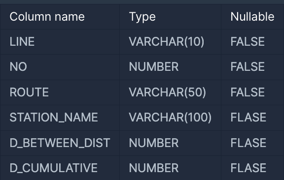 2. FROM SUBWAY_DISTANCE 테이블에서