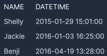 SELECT A.NAME, A.DATETIME
